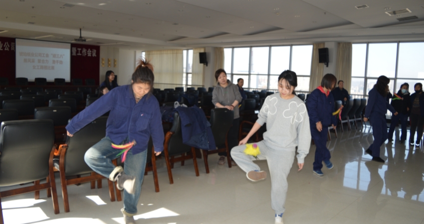 琥珀纸业公司工会举办了以“迎三八 展风采 聚合力 激干劲”为主题的女工踢毽比赛活动。
