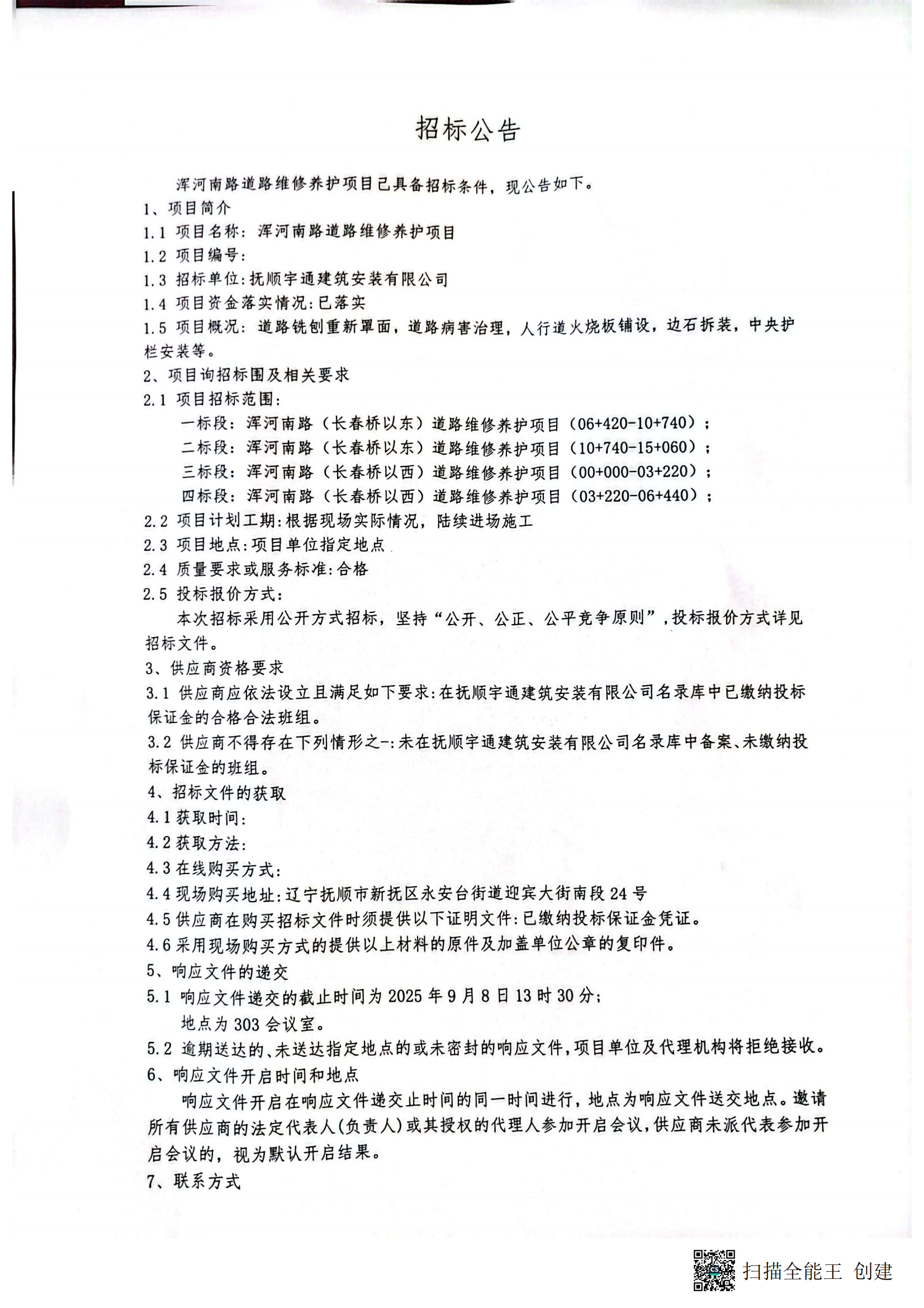 浑河南路道路维修养护项目(9.2)
